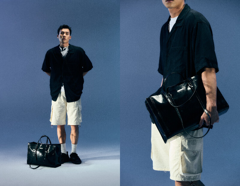 七月底全推出、代言人周汤豪帅气同款的加尔斯手提包,主打休闲、微正式的时尚品味风格,揉皱油亮皮搭配银色ROBINMAY金属几何造型标誌的外观设计堪称绝配,一背上出门立刻就是自带气场的注目焦点,很适合日常着装注重搭配细节、追求与时尚同步的品味男子。